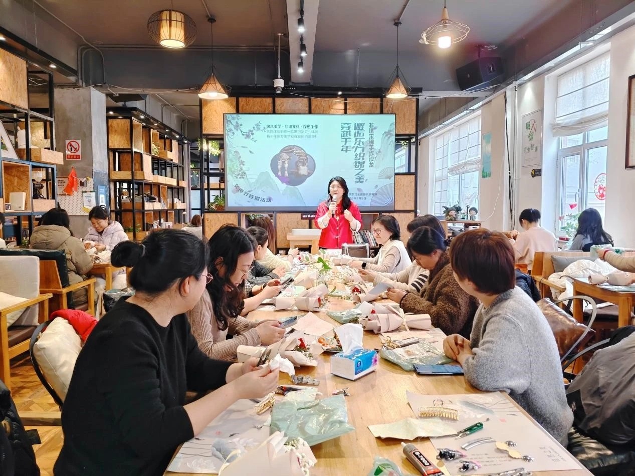 为庆祝“三八”国际妇女节,传承中华优秀传统文化,丰富全院女教职工精神文化生活,3月5日,东北全面振兴研究院在1952咖啡厅成功举办以“穿越千年 邂逅织锦之美”为主题的非遗宋锦手作沙龙,以充满东方美学意蕴的手作体验,为全院女教师和科研人员送上温馨的节日祝福。
